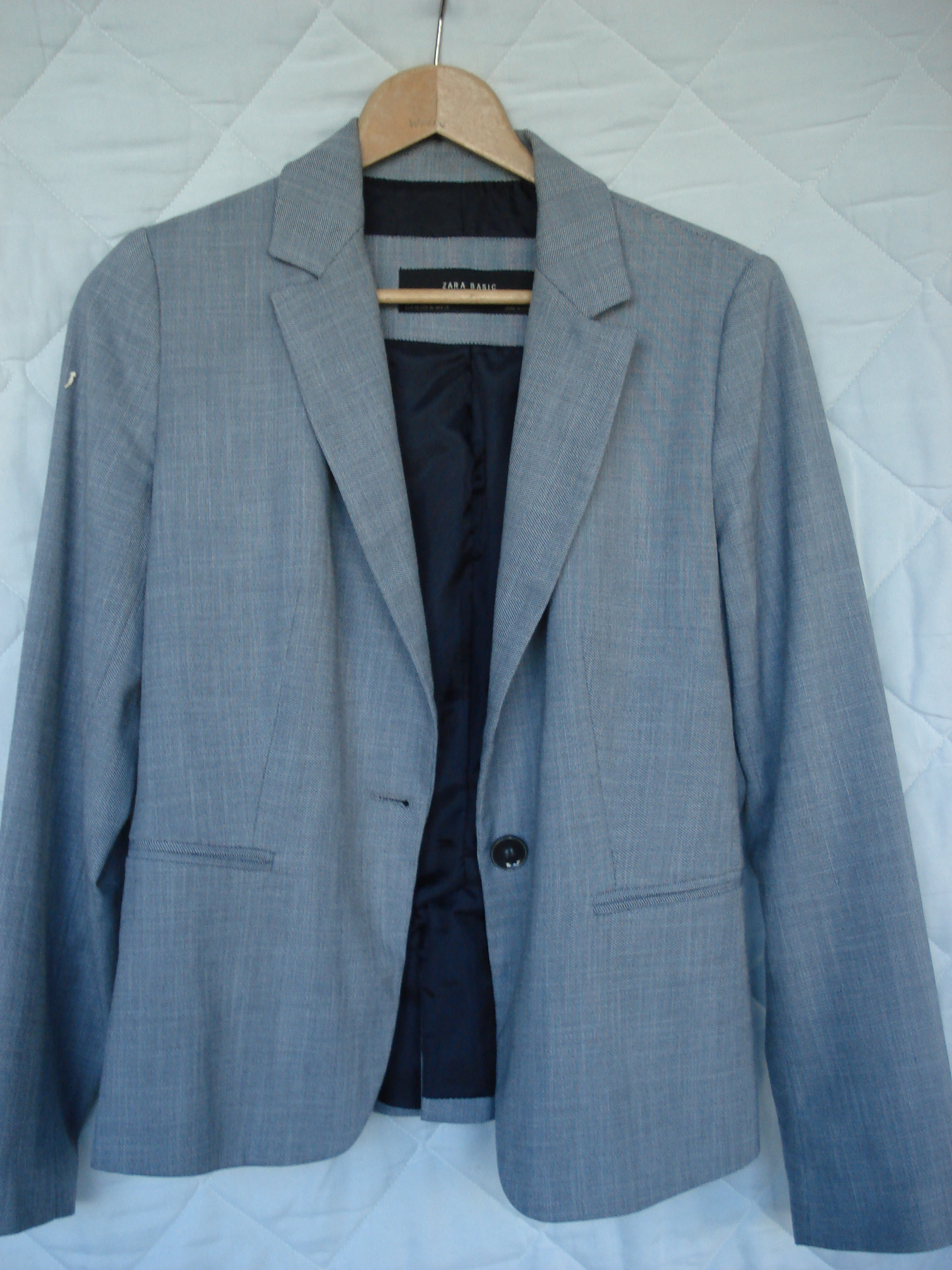 Veston ZARA BASIC gris et noir sergé avec chevron (chic, bureau);